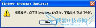 如果对方已经将你踢了的话,将会弹出“不是对方好友,不能进行合影”的提示(见图2)。反之,如果可以正常进入合影页面的话,说明还在好友的QQ好友列表中。不过需要注意的是,QQ很多功能都是要进行付费的,从大家熟知的QQ秀,到这里的合影都是这样,这也许可以算是 QQ网上赚钱的一个方法吧。