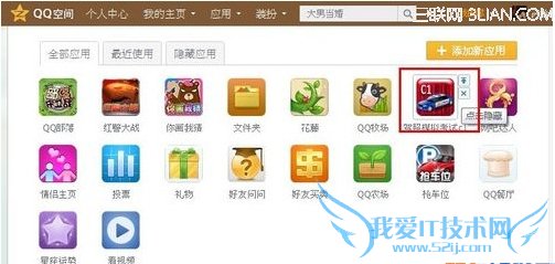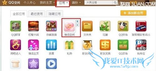 1.打开QQ空间,把鼠标放在应用那,再把鼠标移到你想删除的应用上。