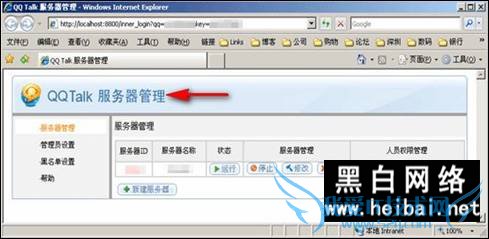 安装完服务器端程序后,启动QQTalk服务器程序,将看到如下界面。(图9)