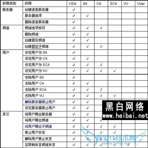 当前在QQTalk语音服务器上有6种用户角色,分别是USA,SA,CA,SCA,VU以及User。
