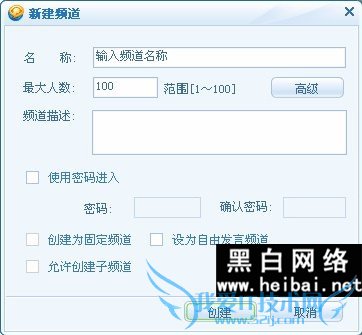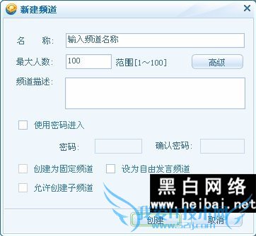 或者在弹出的创建窗口中点击“高级”,对频道进行更多的参数设置,如下图所示: