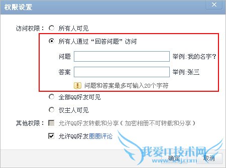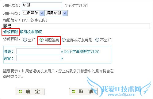3、选择“修改权限”按钮,您可以选择“问题答案”来重新设置新的QQ相册密码。