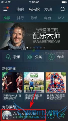 1)打开【手机QQ音乐】,进首页点击下方的【播放器】,进入到歌曲播放页面。(如下图)