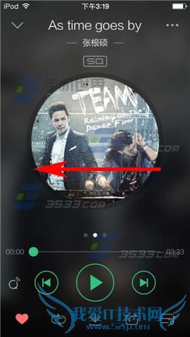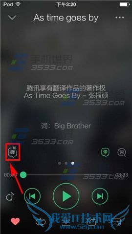 2)在播放歌曲时,用手指往左划,切换页面后,点击【弹】字。(如下图)