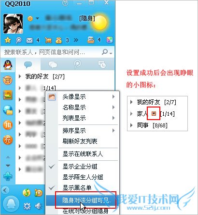 QQ2010正式版SP2.1或以上版本实现分组设置。具体设置方法如下: