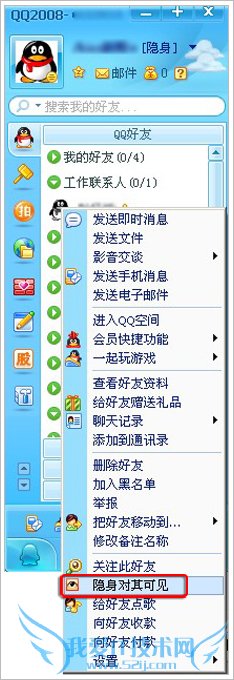设置隐身对其可见,首先必须QQ的登录状态为:“隐身”。