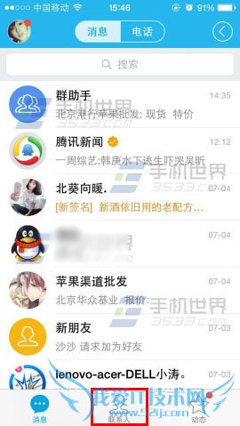 1)进入QQ主界面,点击下方【联系人】;(如下图)