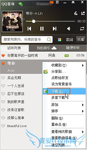 1、鼠标左键单击播放列表中的歌曲,点击下载图标(图例为QQ音乐2012版本);