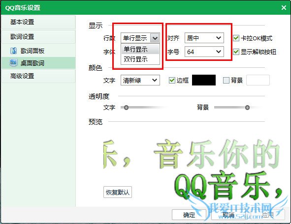 大家想要将歌词拉长,如果是字体加大的话,就直接加大字体。当然我们也可以设置双行显示