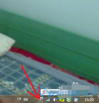 5、qq图标是隐藏而不是消失,我们还可以通过点击任务栏里的“显示隐藏的图标”找到qq图标。