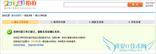 第三步:点击“提交”,即表示此订单成功提交(如下图所示),买家需主动联系卖家确认发货。