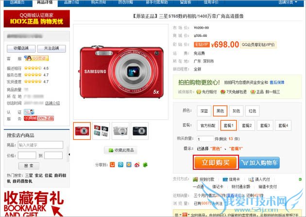 第二步:若想购买此商品,点击“立即购买”(如下图所示)或加入购物车待商品选择完毕后一起购买;