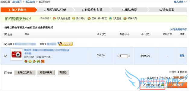 b)先将商品放入购物车的买家,在后续进入购物车时必须勾选“货到付款”选项,如下图所示。