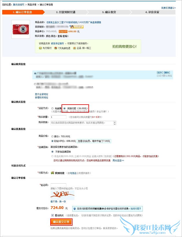 a)若需立即购买,在下单页面必须选择“货到付款”选项,如下图所示;