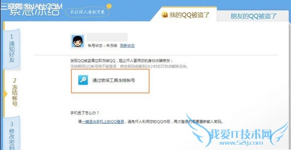 在“紧急冻结”界面中,点击“通过密保工具冻结账号”,点击“获取验证码短信”,输入手机收到的验证码后,就能对账号进行短暂的冻结了。