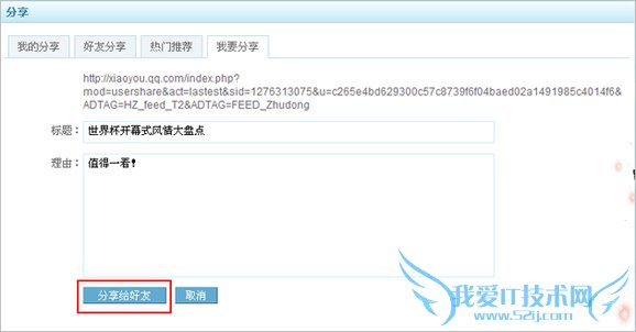 二、在“我要分享”页面,网址栏输入您想要分享的网址,再输入标题和理由,点击“分享给好友”即可成功。