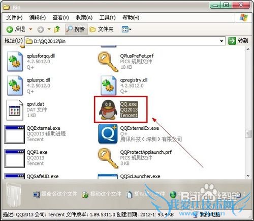 然后我们退回到QQ文件夹里面。 打开bin文件。 找到QQ.exe 双击打开看看是否能运行!!
