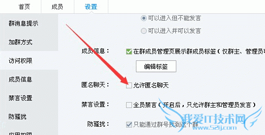 接着还是选择设置页,禁言设置,在“允许匿名聊天”前的框里打勾或去勾就是了!