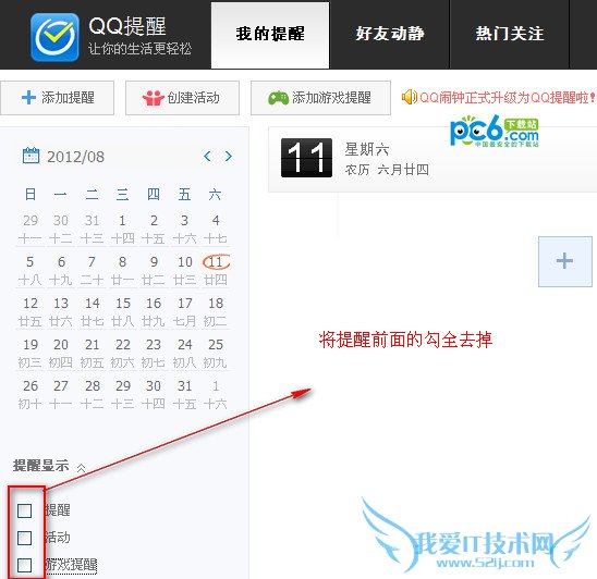 或者打开qq提醒(点击进入),然后将所有提醒项目前面的勾去掉即可。