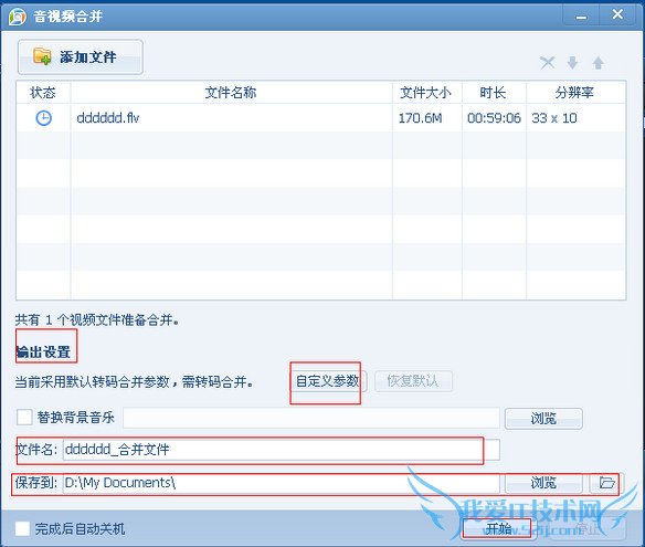 2、在合并界面添加要合并的视频,设置好各种视频合并参数,设置好保存路径,点击【开始】,就可以了