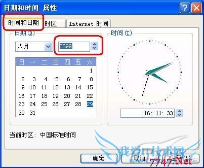 双击屏幕右下角的任务栏上显示的“时间”,在打开的“日期和时间属性”对话框中的“时间和日期”选项卡下把年份改为2099年,然后点“确定”退出。这时再登陆QQ时就会上去就下来,什么也干不了,如图6。