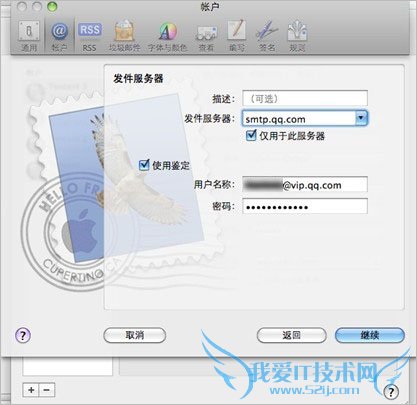 在Mac中创建vip.qq.com的帐户时,默认的配置无法获取收取服务器和发送服务器,此时会弹出服务器配置信息让您来填充。具体填写方法如下: