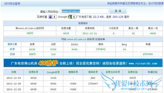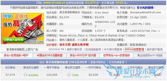 这里我们可以看到除了百度付费广告,在百度快照一直占据前几位的像EF、新东方等等,可以说是语言培训行业的最大竞争者。所以第一步我们就知道在这语言培训市场中你的竞争对手,然后对他的网络数据进行分析。