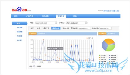 百度分享为站长和网站管理员免费提供了详尽的数据分析功能,包括了每天网站和各个子域名在不同时段的分享量、回流量、热门网页不同时段的分享量和回流量、还有热门分享网站的排行,这些数据可以为站长和网站管理员改进网站展现形式和内容质量提供参考。