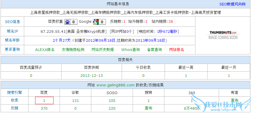 从上图中可以看出网站域名年龄是2个月27天,网站收录是1,反向链接是370。