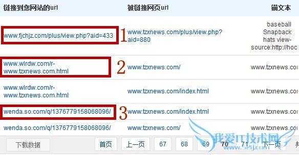我标注了1,,2,3一共三个链接到网站的URL,其中1和3的YRL中不包含域名tzxnews.com而2是包含的。我给大家分别截图。假设我点击3,这类链接到网站的URL是不带有网站域名的,点击来源进去可以看到: