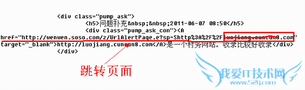 作为外链建设除了是为了吸引流量,更重要的是要传递权重。但是搜搜问答平台并不能传递权重。具体我们可以通过页面的源代码来查看。如下图所示,在代码中我们可以发现我们留下的链接其实是一个跳转链接。而这种方式的链接我想大多数的站长都应该知道是并不能传递权重的。所以即使你这个页面在搜搜问答平台做再多的链接也不能提高权重,提高排名的。
