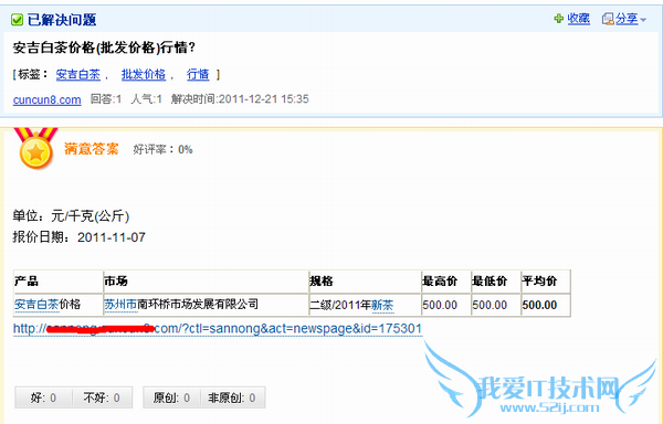1:相对百度知道,搜搜问问发链接更容易。笔者曾在百度上测试,在百度知道上如果要留外链的话,一般只能留首页的链接,而且不能只是单纯的留下连接,要通过一些方法绕过检测,比如abcd。http://www.XXX.com。abcd。而搜搜问答就相对简单,一般都可以直接通过,部分不能通过的只要以类似百度的这种形式就可以通过了,而且搜搜还有一个优点就是可以发布内页的链接,而百度知道内页的外链一般是不能留的。如下图所示。