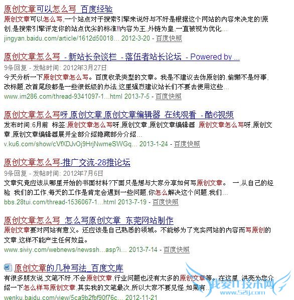 下面给大家举例说明一下吧,假若你写的一篇文章是关于原创文章怎么写的话,那么你写的文章被收录几率到底高还是低?首先,我们通过百度搜索引擎搜索:原创文章怎么写