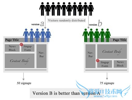 在A/B测试中(也被称为分离测试),你一次只对页面上的一种因素进行比较,这个因素也许是网页中影响转化率的关键(例如按钮颜色、尺寸、广告复制标题)。相比而言,多变量测试是把许多因素同时测试。但是,A/B测试比多维度测试更简单也更容易完成。