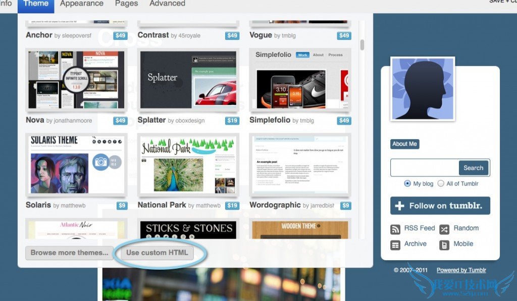 可完全自定义样式的只有Tumblr,用户可以自主编写HTML结构和CSS样式表,并提供背景图替换功能,国内轻博客只有点点网、人人小站和米博做到了可替换背景图(点点网可自定义css,并能自定义各区域文字颜色,米博仅能自定义背景色)。