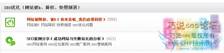 从上面两图中,大家可以看出首页主旨关键词的词太广泛了,没有一点的局限性。而栏目页分类却大大的缩小了范围,就好比分类上面的分类,网站被降权、被K 这个类目主要是用来解决网站日常优化过程中出现的问题,可以前来求助高手。让高手助你一起解决当前出现的问题,也可以让你预先了解优化过程中会出现的问题,当自己真正遇到的时候那么就可以轻而易举的解决。