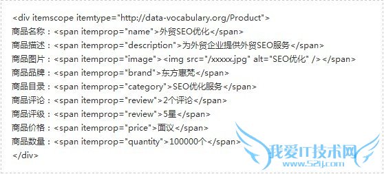 span中的小项则定义了属性,均使用 itemprop 属性进行标识。例如,itemprop=”description” 在商品大类下定义了商品的描述。