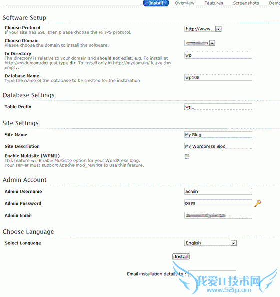 最后,填写完毕后,我们点击下面的”INSTALL”按钮就可以完成,然后我们根据自己的需要,登陆WP站后台修改信息,然后布局等等。总结,我们要习惯使用工具,这样可以快速建站,省的我们需要一步步FTP上传,以及添加数据库等工作。网络本来就是一个效率工作。