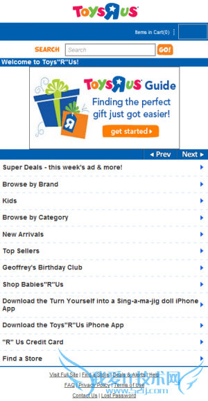 网站开发者可以考虑垂直菜单,这样当用户决定点击那个链接的时候可以很容易掌控。下面的例子展示了Toys “R” Us的移动站点是怎样通过垂直菜单来实现效果优化的。