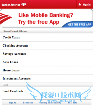 例1: American Express检测到UA是移动浏览模式,为了提供良好的而用户体验,就给用户呈现他们移动版阅读模式。但是,在网站右下角也会安置一个连接让用户可以将用户代理切换到桌面站点模式。