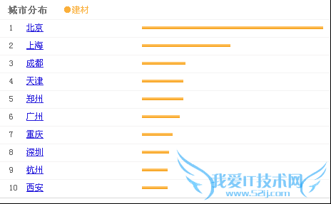 城市分布图进一步对市场进行了细分,不少企业盈利模式必须采用地面营销和网络营销相互结合,需要考虑到用户销售模式以及用户搜索行为,无论实体店还是运营网站的侧重点都必须进一步把握,了解城市的分布图尤为重要。建材行业中,用户关注度在重庆为第7名,可见用户群体也不少。