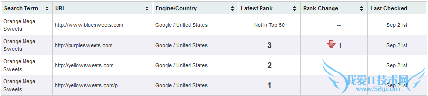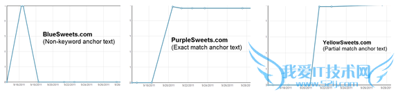 在9月2号实验者查排名的时候,发现http://yellowsweets.com/p已经没有了,http://yellowsweets.com/排在第一位,PurpleSweets.com排在第三位,bluesweets.com仍然没有进前50名。