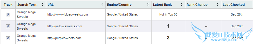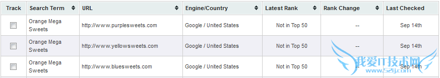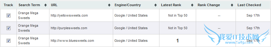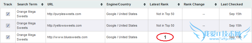 9月16号排名情况(下图),bluesweets.com仍然在第一,其它两个站仍然没有出现在前50名。
