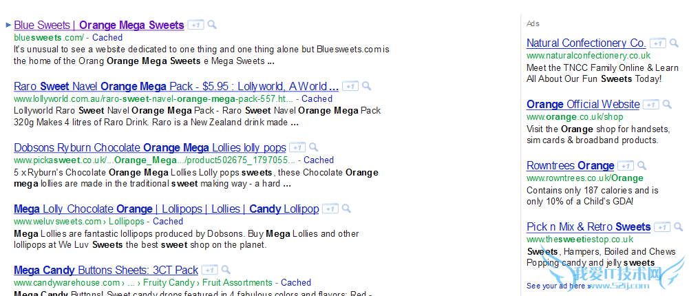 然后选取了这个领域中的一个关键词“Orange Mega Sweets”,这个关键词在这个领域中也是竞争度很小的一个词,实验者选择这个关键词的目的也是为了尽量避免竞争激烈对实验产生较大干扰。