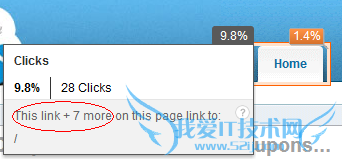 如果你足够细心,你会发现曾经在Google Analytics中有一些热图的点击百分比例的标注是实线格,有一些则是虚线格。虚线格的意思是,存在一个或者多个完全一样URL的链接,标注的这个 link只是其中之一,并且标注的百分比并非是这个link的点击量,而是所有具有这个URL的links的总点击量。现在Google Analytics采用了更好的方法,即直接标注出这个URL有多少个相同的链接(如右图所示)。因为多个链接共享同一个URL的原因,解释了为什么有一些朋友认真的把Google Analytics页面点击热图的所有百分比加总起来不会得到100%,而是远高于100%的原因。
