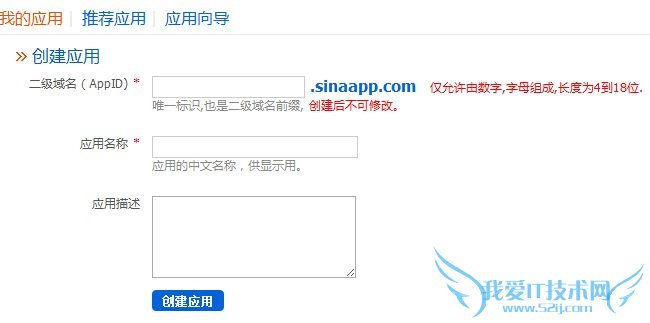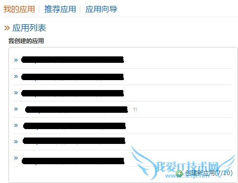 2、创建应用:注册登录后,点击“我的应用”,能够显示出已经创建的应用列表。点击下面的创建新应用,进入应用设置。