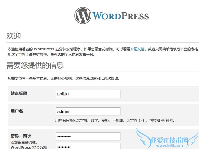 5、设置wordpress。也就是咱们最常见的设置,依次在下面输入你的站点标题、用户名、密码,点击确认,到这里,你的博客就已经建好了。访问地址就是你创建的应用地址。