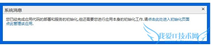 到这里系统会自动加载选择的应用程序,加载完成后会显示如下界面,点击“点击此处进入初始化页面点此管理该应用”进入博客的设置。