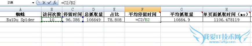 单页面抓取时间==停留时间*3600/总抓取量 计算公式:=D2/C2 enter键
