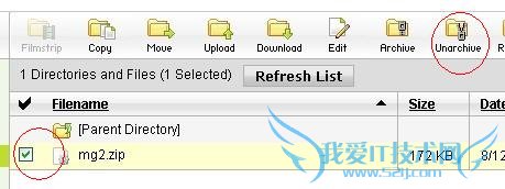 第十步:勾选上文件前面的框框,然后你会发现右上方的“unarchive”会由灰色变亮,这是个什么样的按钮呢?对了!细心的你一定发现了,.zip是一种压缩格式的文件,而我们现在就是要用”unarchive”来给我们的文件解压!点击它!